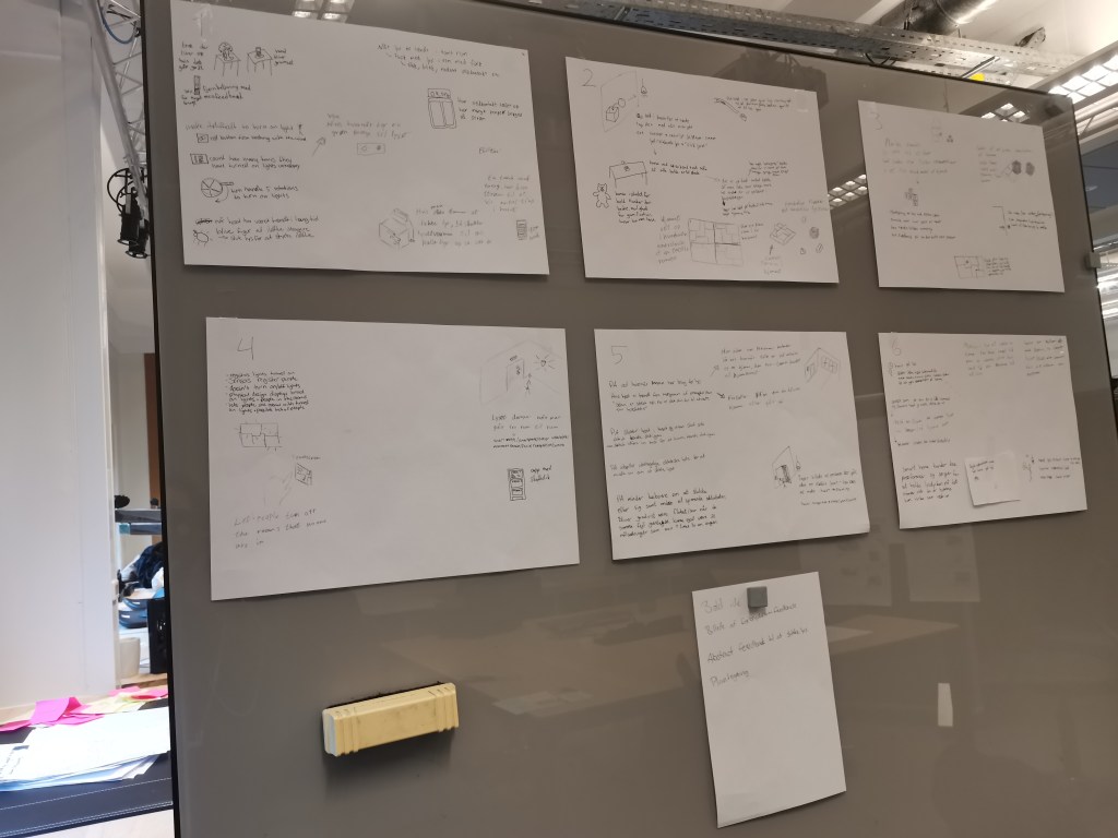 Inspiration Card Workshop: A workshop to develop new ideas by combining a set of customised cards (technology cards based on different common day tech, and domain cards based on the area that gets design for)