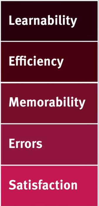 Learnability: How quickly a person can learn a new system to great level.